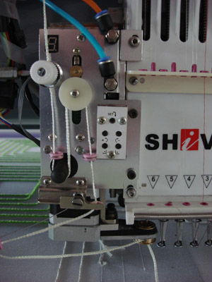6、自動送線控制。并且可根據(jù)繡品需要任意調(diào)節(jié)送線的速度和張力,有效改善繡品質(zhì)量。